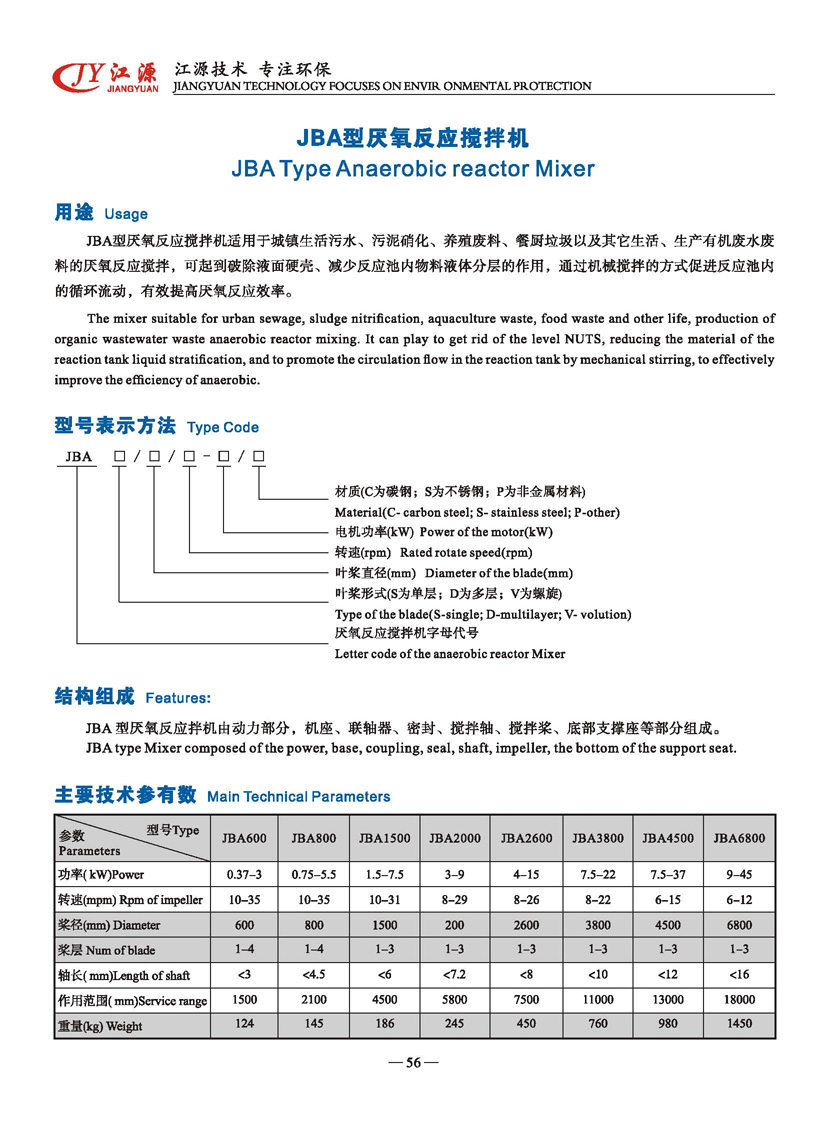 JBA型厭氧反應(yīng)攪拌機(jī)