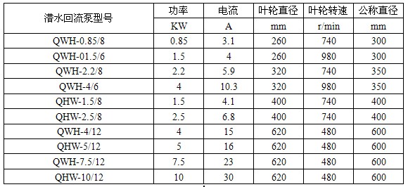 潛水回流泵的選型表: