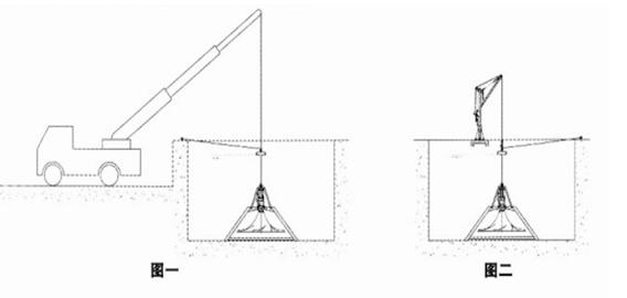 圖一是通過(guò)長(zhǎng)臂汽車吊直接將攪拌機(jī)吊入指定位置;